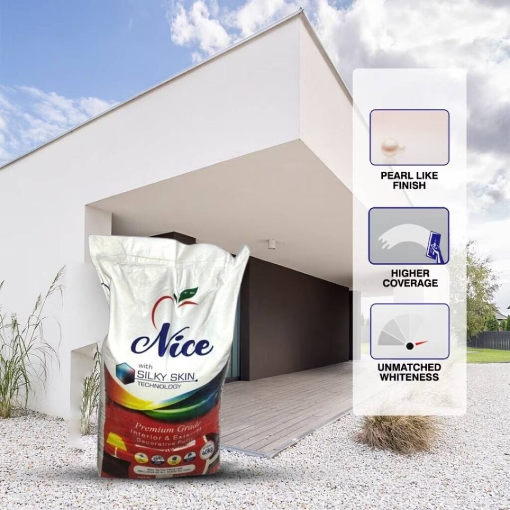 Nice Wall Putty is a premium white cement–based product designed to give your walls the perfect base before painting. With its high plasticity and smooth finish, it effectively fills cracks, dents, and surface imperfections, ensuring an even and durable foundation. Acting as the first step in the painting process, this putty enhances paint adhesion, prevents flaking, and delivers a flawless surface that brings out the true beauty of your topcoat.